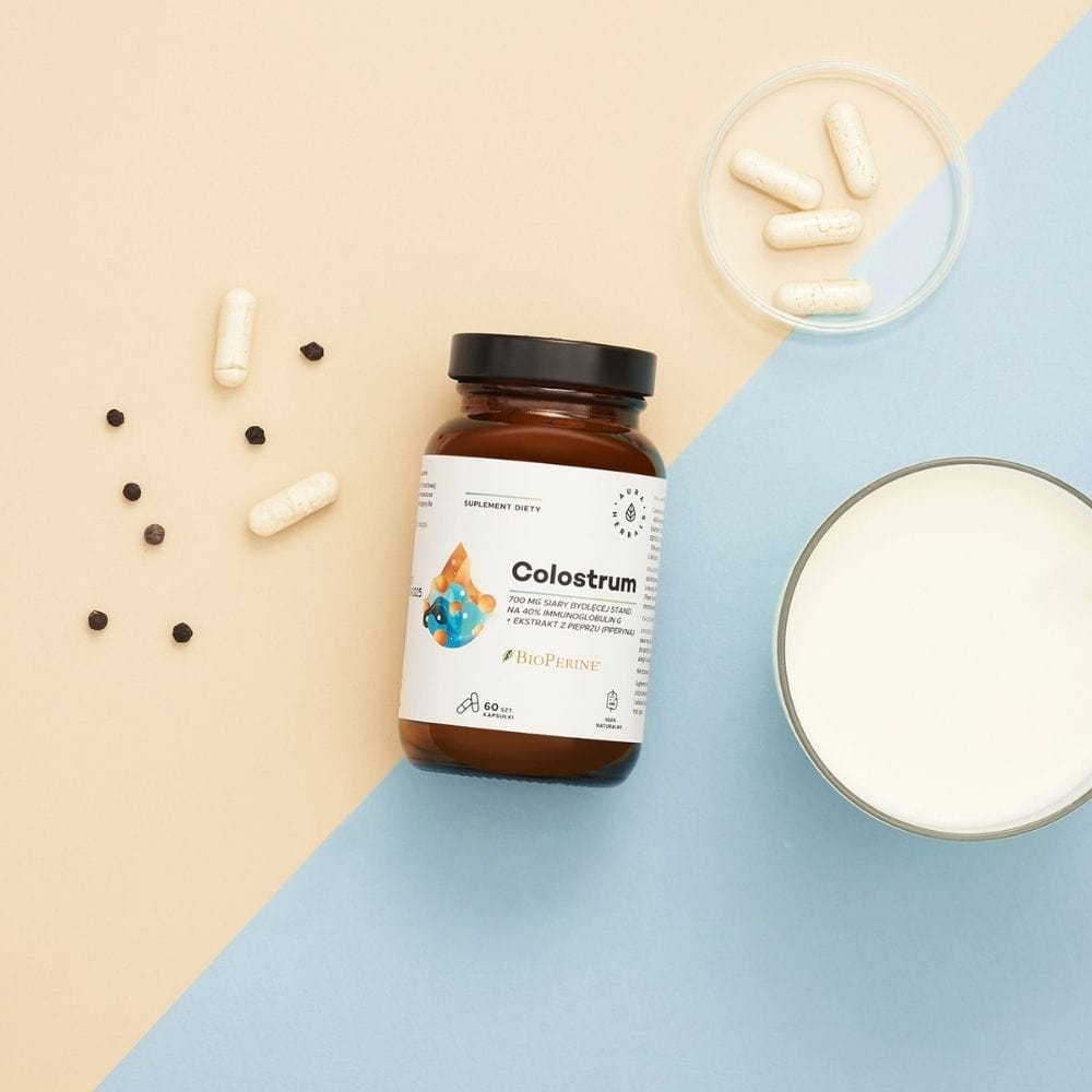 Aura Herbals Colostrum 700 mg + BioPerine® is a 100% natural dietary supplement in capsule form. Source of colostrum - bovine colostrum, standardised to 40% immunoglobulin G. Enriched with branded BioPerine® black pepper extract standardised to 95% piperine.