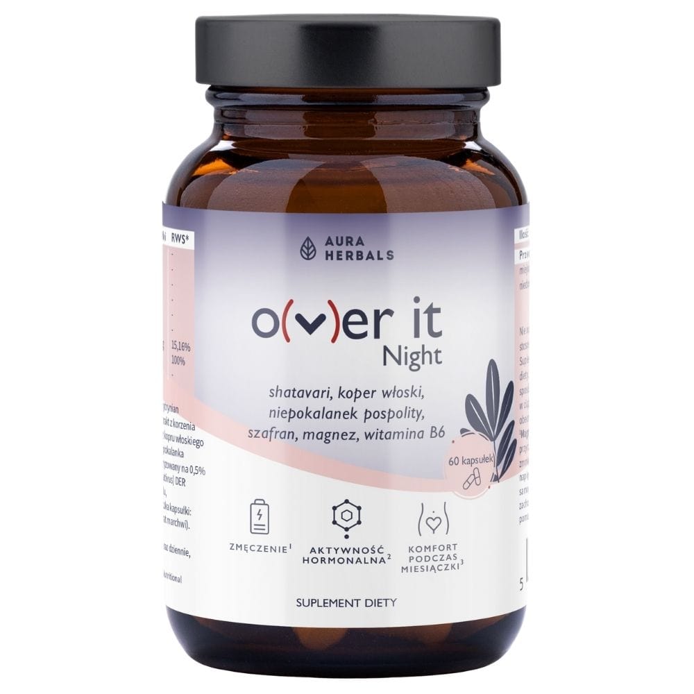 Aura Herbals Over It Night is a dietary supplement in capsule form. Source of plant extracts from chaste tree, saffron, shatavari, and fennel. The composition is enriched with magnesium and vitamin B6 (Quali®-B).