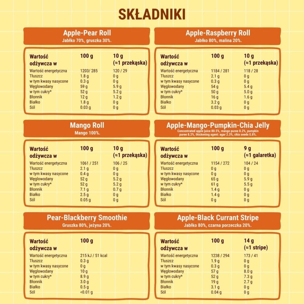 - Apple-pear rolls (ingredients: apple 70%, pear 30%).