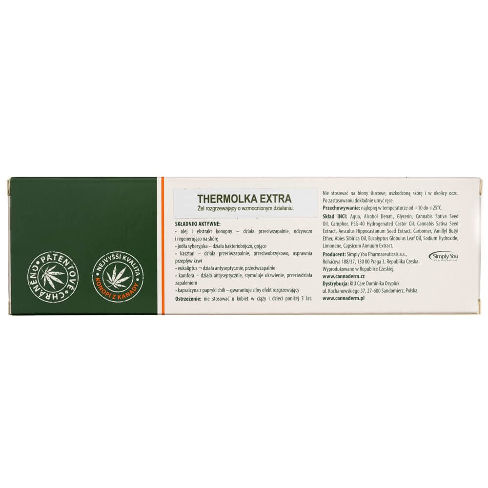Warming gel for muscle and joint pain with enhanced effect. Hemp content increased to 16% (Thermolka in the basic version contains 6% hemp oil). Relieves chronic back and joint pain, reduces joint and muscle stiffness.