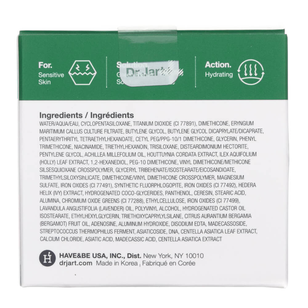 The specially formulated formula contains niacinamide and Dr.Jart's Green Repair Solution™+ - a proprietary dermocosmetic complex that combines the regenerating power of tiger grass (Centella Asiatica, also known as Cica) with a skin-boosting blend of herbs, minerals, moisturising humectant and probiotic ferment. With this cream, yourskin is soothed, calmed and intensely hydrated, regaining a healthy and youthful appearance.