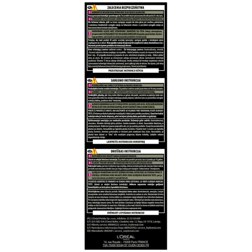 The gel texture with oil, enriched with a high concentration of permanent dyes, guarantees excellent hair coverage and long-lasting results. The product is suitable for all hair types and provides up to 100% coverage of gray hair.