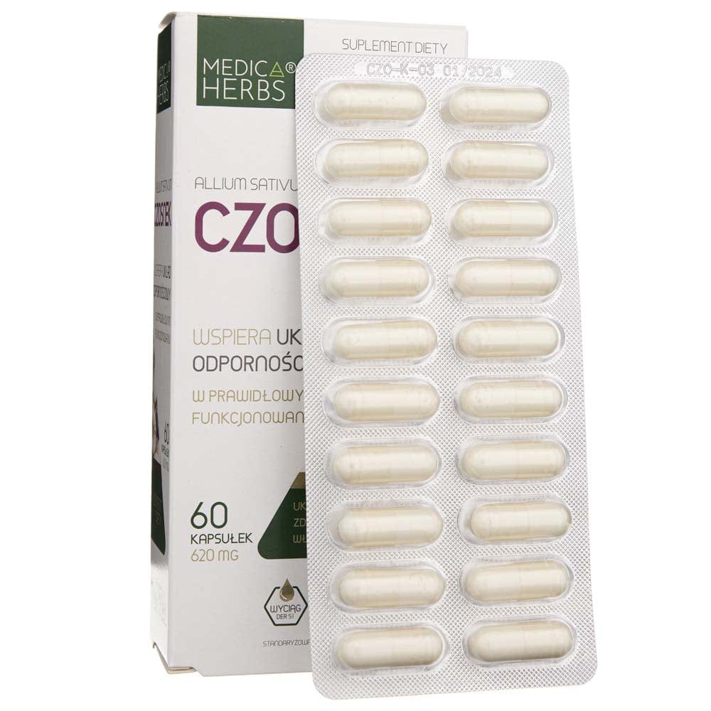 Garlic by Medica Herbs is a dietary supplement in capsules containing the extract of the garlic bulb Allium sativum.