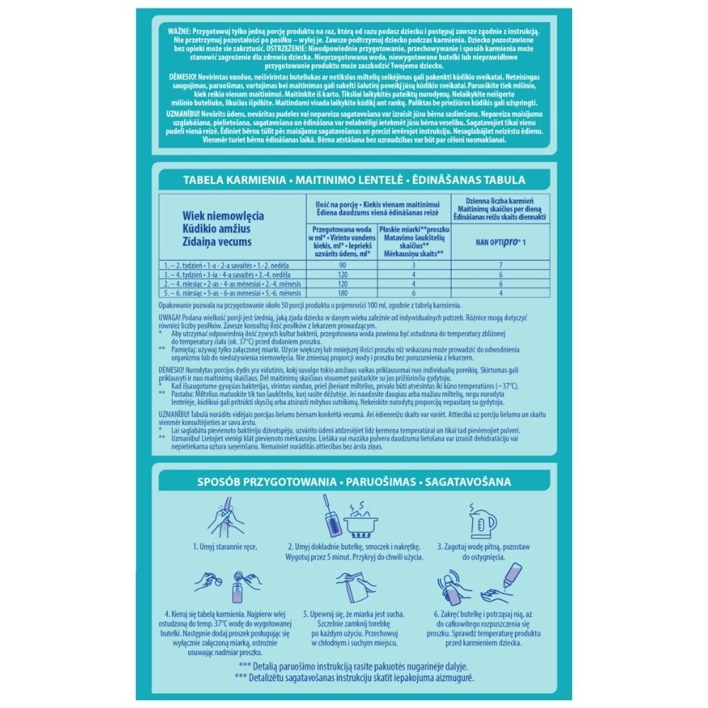 NAN OPTIpro 1 is an initial milk specially formulated for the needs of infants from day 1. Suitable as a substitute for breast milk or as a supplement to breastfeeding. This initial infant formula provides all the nutrients necessary for the proper development of your child.