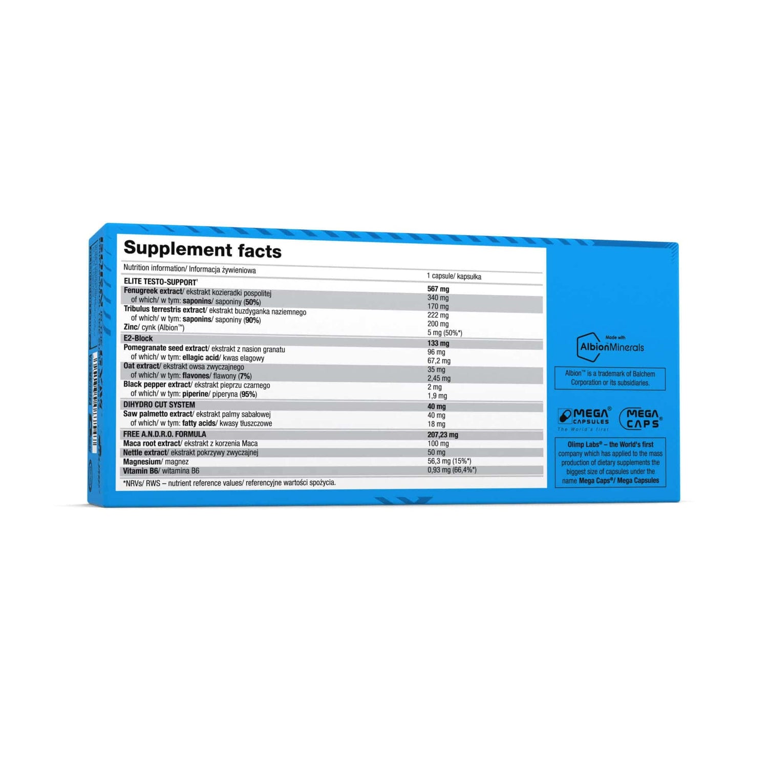 Olimp T-100 Hardcore Mega Caps is a dietary supplement by Olimp Sport Nutrition. It is a combination of high-quality plant extracts, zinc, magnesium and vitamin B6. Individual components were tested for the absence of heavy metals. The tests were performed in the modern Research and Development Center of the Olimp Laboratories pharmaceutical company, and serve as a proof of the dietary supplement's safety of use. The product is also free from substances commonly recognized as illegal doping!