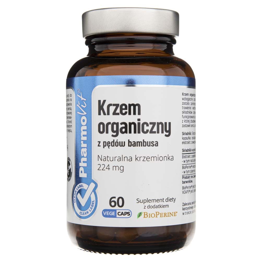 Organic silicon from bamboo shoots containing 70% silica. The composition is enriched with BioPerine® black pepper extract, and the whole is encapsulated in a vegetable Vcaps® capsule. Black pepper supports digestion and absorption of nutrients, and enhances the effectiveness of herbal ingredients. Silicon (Si) plays an important role in the proper functioning of the body. It is found primarily in connective tissue, which makes up tendons, mucous membranes, blood vessel walls, heart valves, skin and the osteoarticular system.