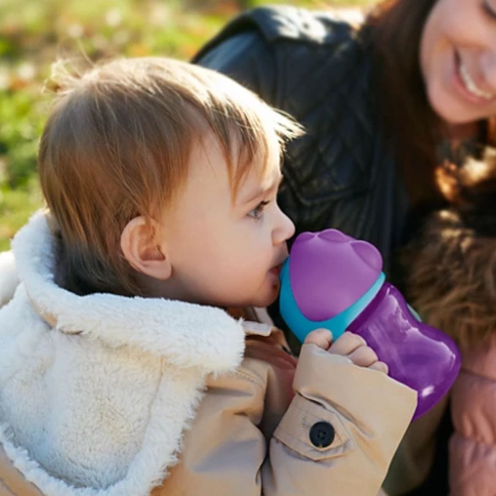 The flexible straw with a curved bottom allows your child to drink in a natural position until the last sip. The ergonomic handles are perfectly suited to small hands, supporting your child's motor development and independence.